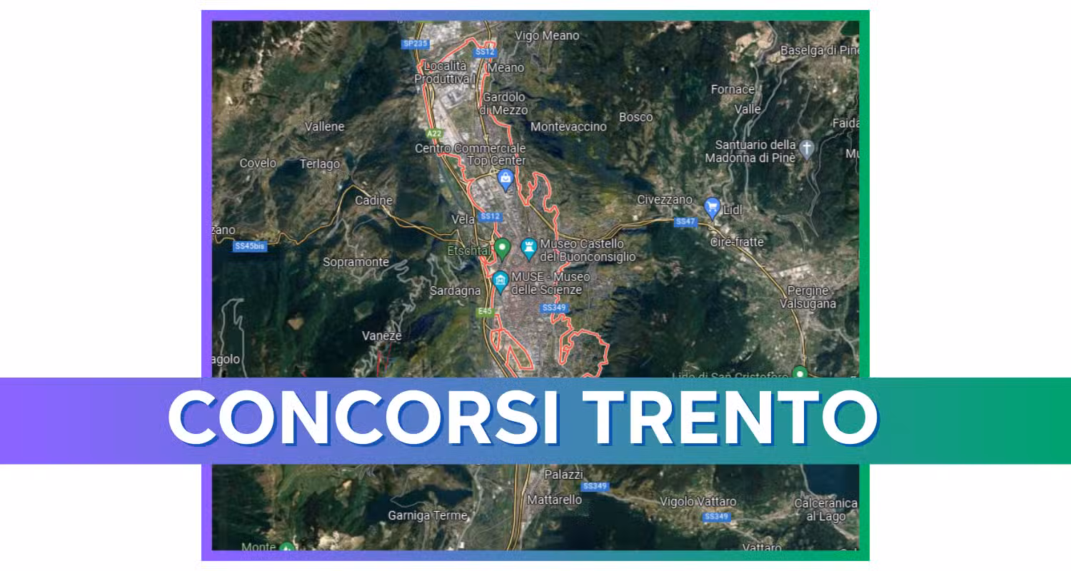 Di seguito l’elenco, costantemente aggiornato, dei concorsi pubblici a Trento non scaduti per i quali puoi ancora inoltrare la tua domanda di partecipazione.